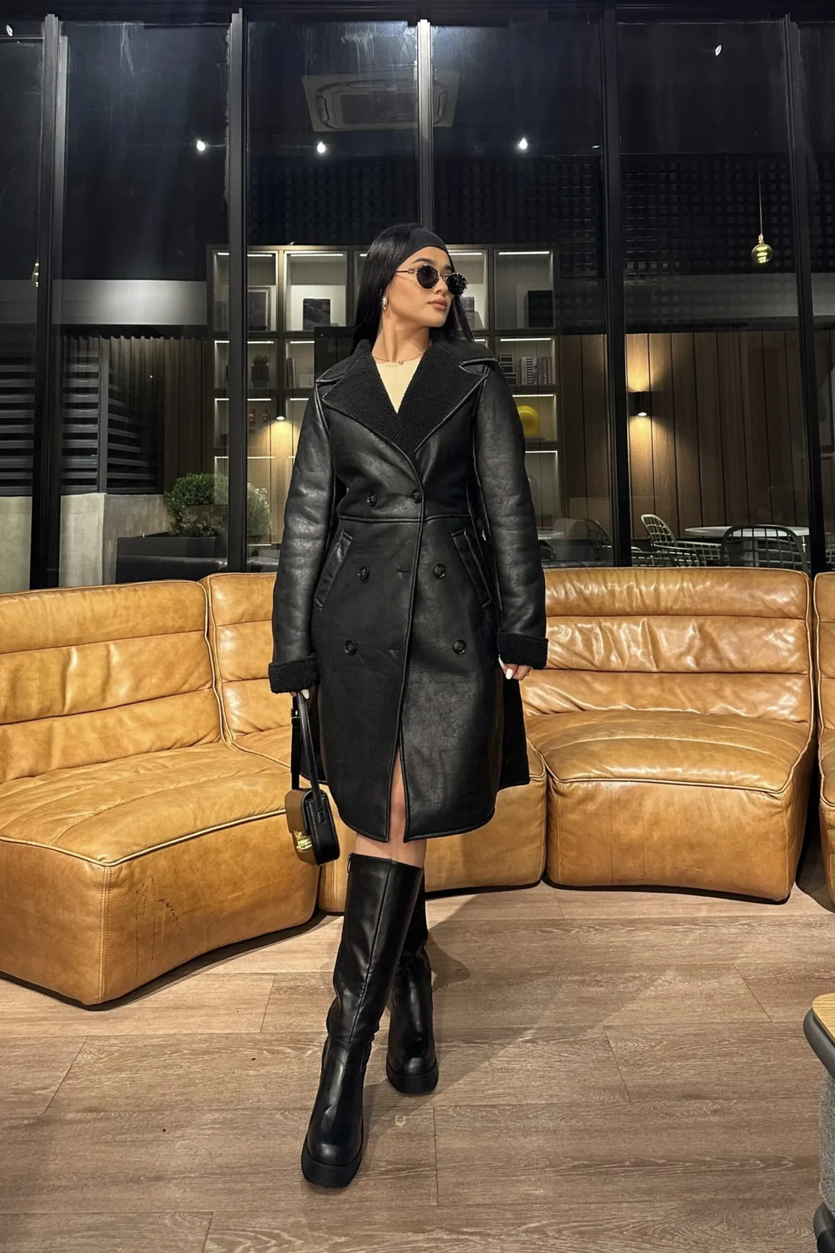 Abrigo ecocuero Noir Fur Lujoso – Premium- peludo desmontable