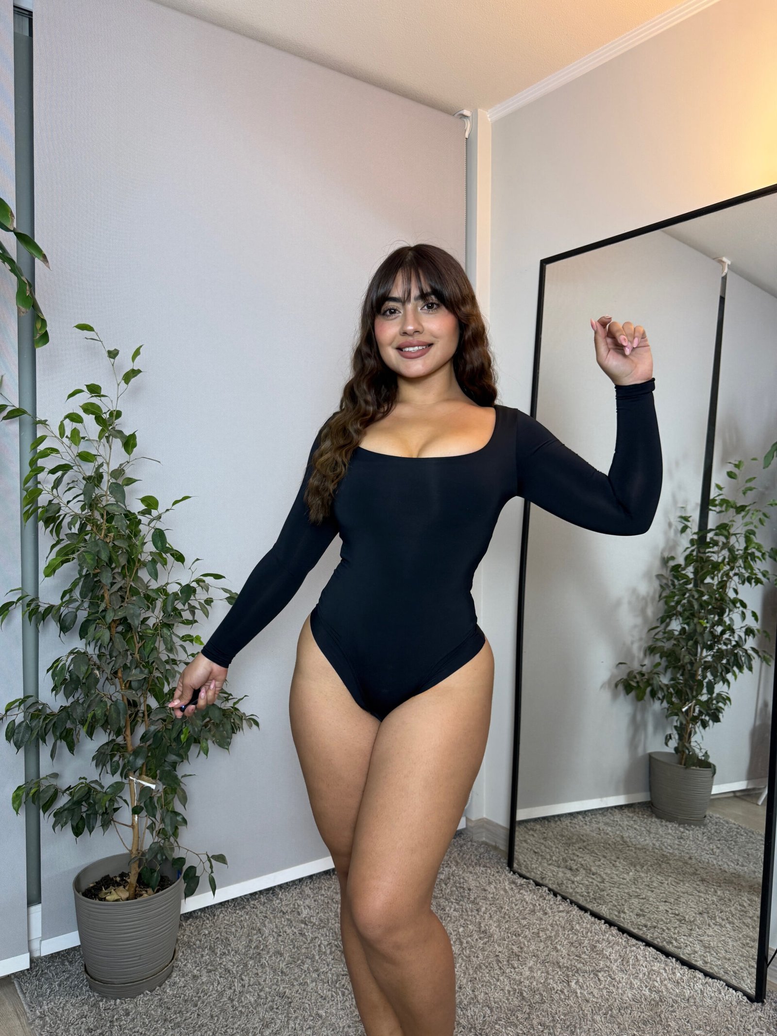 Hermoso body reductor premium de manga larga que estiliza la silueta y se adapta perfectamente al cuerpo. Su tela elasticada de alta calidad ayuda a moldear cintura, abdomen y caderas, entregando un efecto modelador inmediato sin perder comodidad.