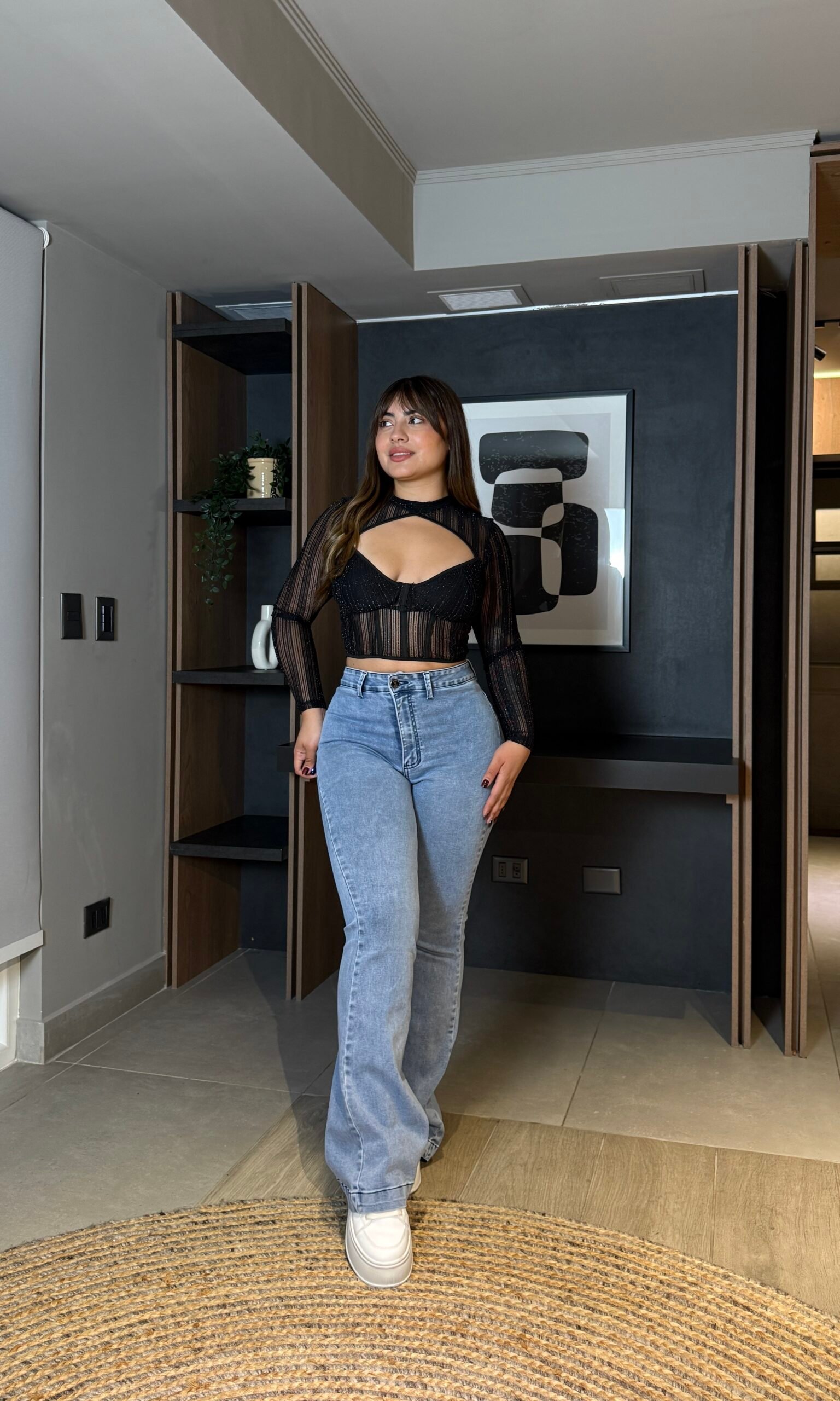 El detalle de las transparencias estratégicas y el escote cruzado en el cuello le da un aire sensual y versátil, ideal para combinar con jeans ajustados, faldas o shorts. Su largo favorecedor y corte ajustado garantizan libertad de movimiento, ideal para caminar, bailar o simplemente disfrutar de tu día con total confianza.