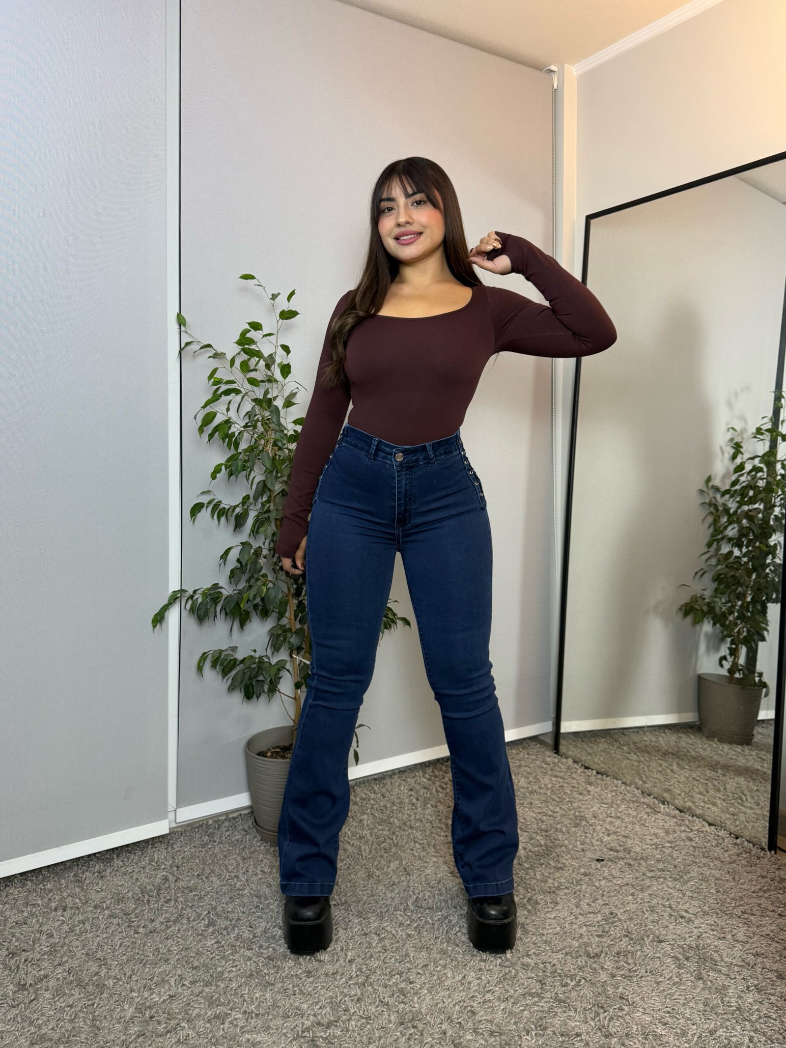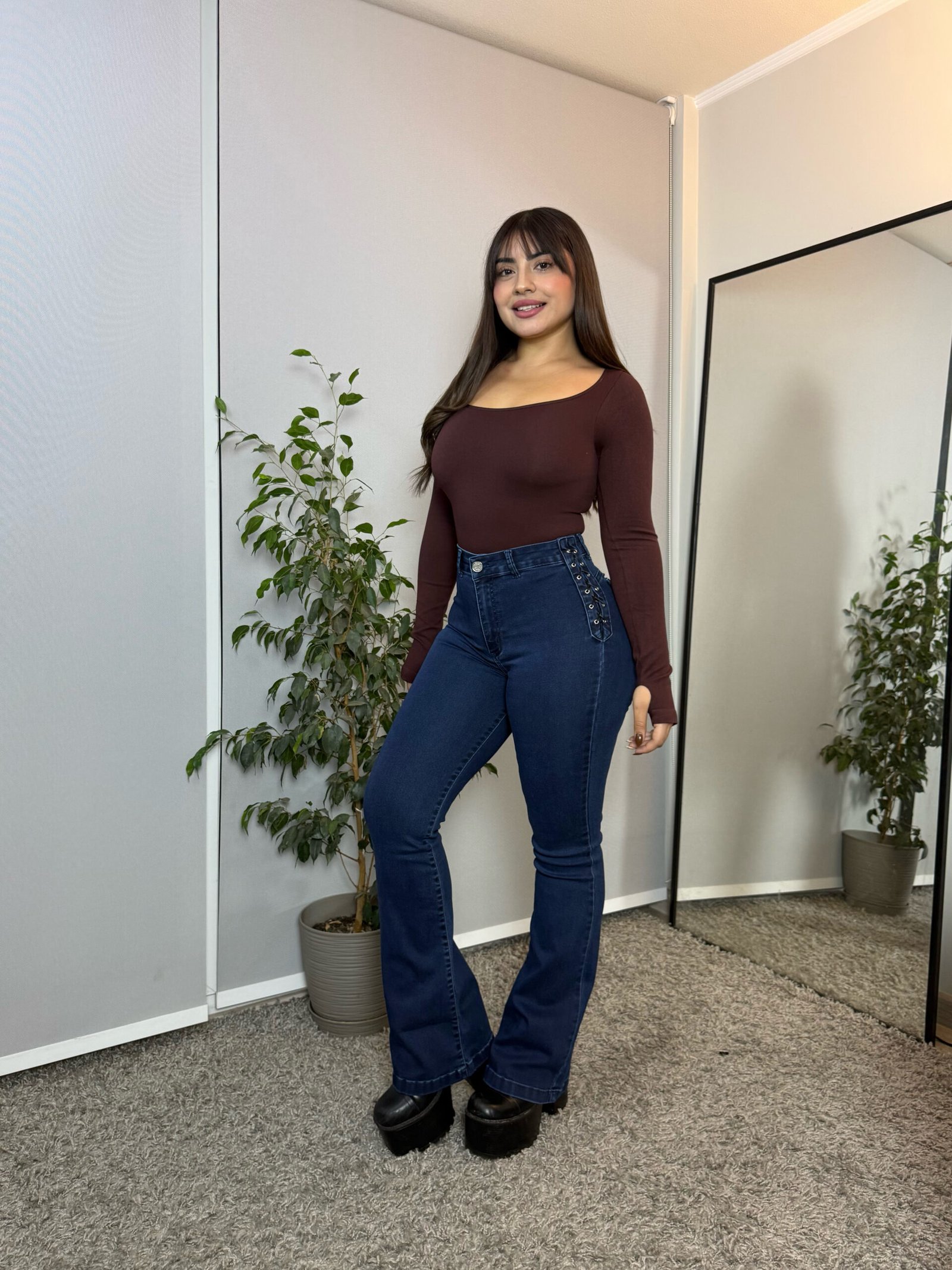 Jeans flare NEGRO BASICO- Paradise - Efecto reloj de arena