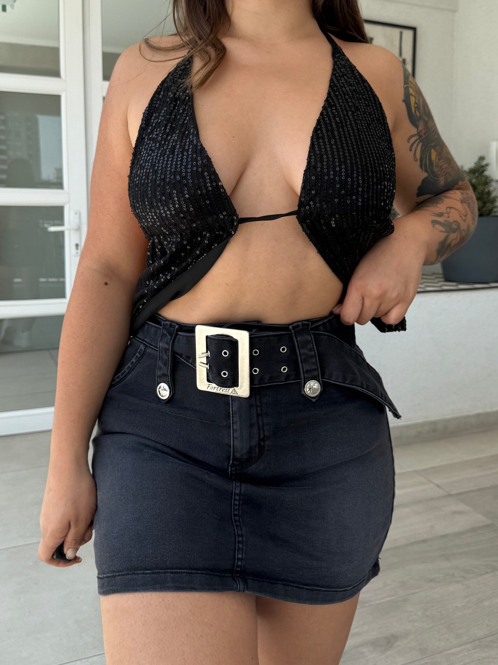 Falda Short negra con cinturón – For3T — porque tu silueta merece ser celebrada.
